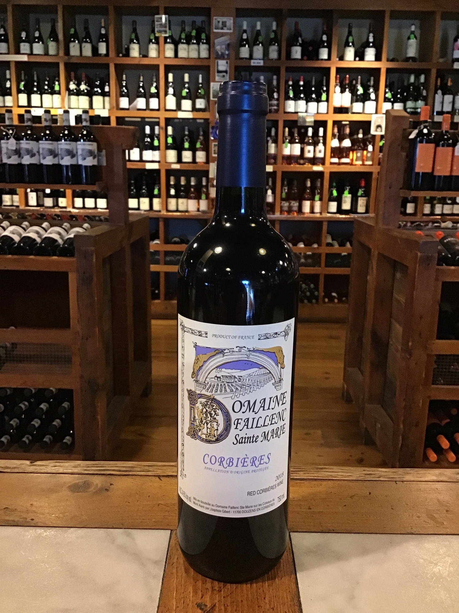 The Faillenc estate was established in the reign of Louis XIV by an army officer returning from India. The site he acquired (12 km east of the walled city of Carcassonne), harsh as it was, had the remains of a Roman winery. Soils are rocky limestone; vineyards are terraced on the foothills of Mont Alaric, sharing their shelves with olive trees and scraggly brush. They are windy, buffeted by the Tramontane wind from the north, which keeps them disease free but also keeps yields extremely low.